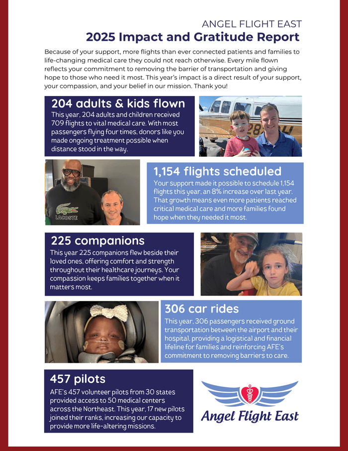 In FY'25 Angel Flight East made a huge impact in the northeastern U.S.